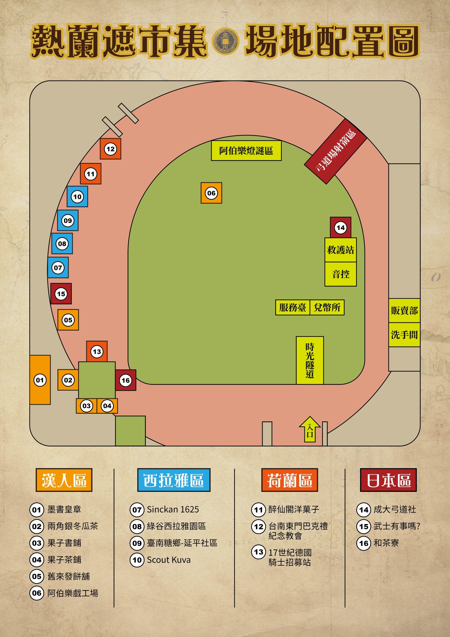 兩角銀冬瓜茶、舊來發餅舖、醉仙閣洋菓子、Sinckan 1625、嘮嘮工作室、綠谷西拉雅、墨書皇章、成大弓道社……感謝老闆們帶著百年傳承穿越時空而來!