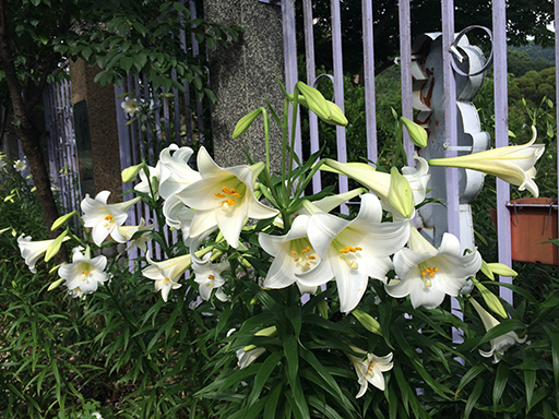 - 臺灣的百合可區分為鐵砲型、亞洲型、東方型三大類。鐵砲型百合以白色花為主,合瓣有清香。參酌戴廷恩、李文立、許圳塗,〈原生台灣百合及鐵炮百合形態及分子標誌變異之研究〉,《臺灣園藝》52卷1期(2006),37-51。陳學文,〈百合分佈情形、性狀及其品種分類概說〉。〈臺灣原生鐵炮型百合之篩選〉,農業部農業知識庫,網址:https://kmweb.moa.gov.tw/knowledgebase.php?id=422026(點閱日期:2025-05-01)。植物命名資訊參酌〈Lilium formosanum A.Wallace. 臺灣百合〉,臺灣物種名錄,網址:https://taicol.tw/zh-hant/taxon/t0086885(點閱日期:2025-05-01)。〈Lilium longiflorum Thunb. 麝香百合〉,臺灣物種名錄,網址:https://taicol.tw/zh-hant/taxon/t0074590(點閱日期:2025-05-01)。