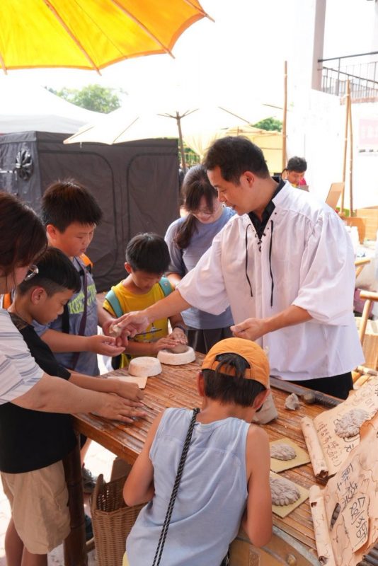 👩🎨 在攤商體驗區,大朋友小朋友們親手壓製「劍獅」模具,專注神情中帶著笑意,一個個可愛又威風的劍獅誕生啦!