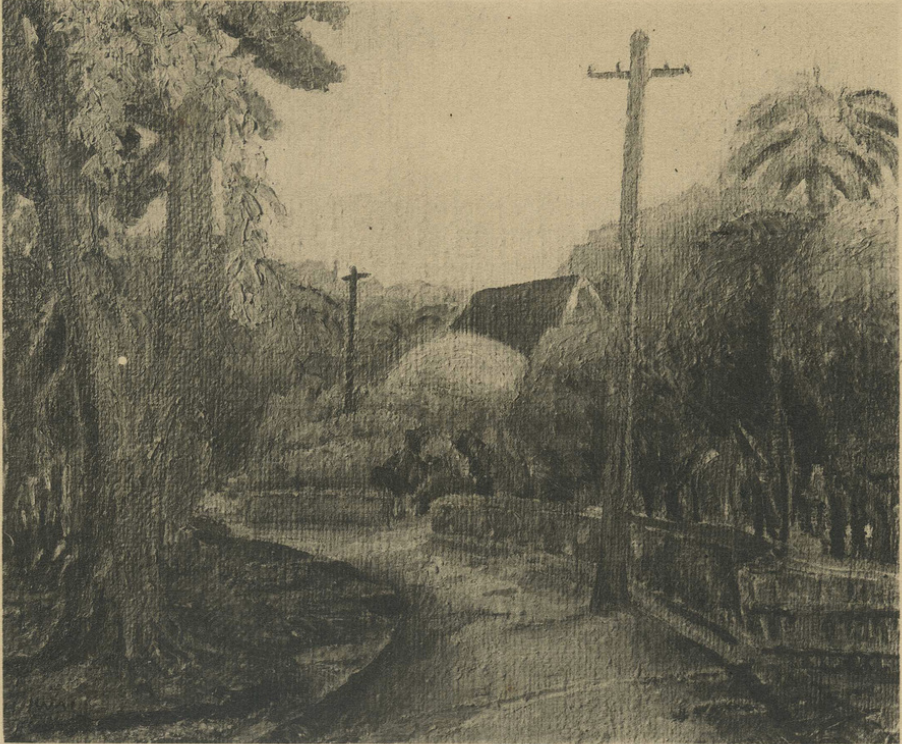 1921年臺灣總督田健治郎以告示第八號,宣布臺北的林業試驗場苗圃試驗地改稱「植物園」。從此以後,肩負研究使命又具備都市生活休閒功能的臺灣第一座近代植物園,正式成立。(註1)日治時期歷年的官辦美術展覽會中,出現過不少以植物園風景為題的入選作品,祝彥熊(1889-待考)於臺展第一回的出品作〈午後的植物園〉(圖1)即為其一。接下來讓我們拼湊、追索百年前〈午後的植物園〉的創作現場,重新發現另一種描繪植物園的角度。