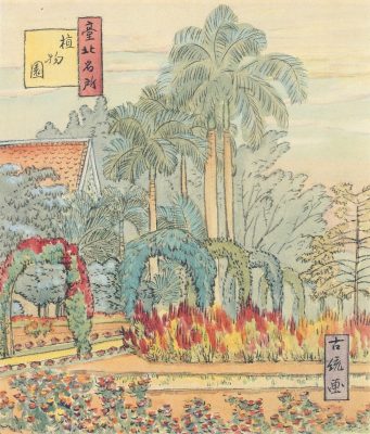 - 鹽月桃甫創作〈萌芽〉時的寫生位置,參酌學者呂采芷的研究成果。呂采芷,〈生機盎然──鹽月桃甫的《萌芽》〉,「Bí-su̍t Taiwan美術台灣」,網址:https://bisuttaiwan.art/2020/10/15/%E7%94%9F%E6%A9%9F%E7%9B%8E%E7%84%B6-%E9%B9%BD%E6%9C%88%E6%A1%83%E7%94%AB%E7%9A%84%E3%80%8A%E8%90%8C%E8%8A%BD%E3%80%8B/(點閱日期:2025-08-02)。關於鄉原古統創作〈臺北名所繪畫十二景:植物園〉時的寫生位置,研究者黃子恩比對植物園舊照片後,認為藝術家描繪園藝花圃區的景致;又,該舊照片中的建築,依張勵婉等人的論文,乃休憩所。綜而言之,〈臺北名所繪畫十二景:植物園〉紀錄下1920年代休憩所與園藝花圃區一帶的風景。筆者進一步對照作品、上述舊照片與舊地圖,由建築與地貌景觀的相對位置推測,畫家應站在休憩所的西北方處取景。黃子恩,〈殞落的新星:田中瑞穗(1920-1945)與他心中的植物園〉,名單之後:臺府展史料庫;張勵婉、蔡碧鳳、謝育慈,〈臺灣頂尖的林業文獻專門蒐藏——林業試驗所圖書館〉,《林業研究專訊》第21卷第3期(2014),頁41。