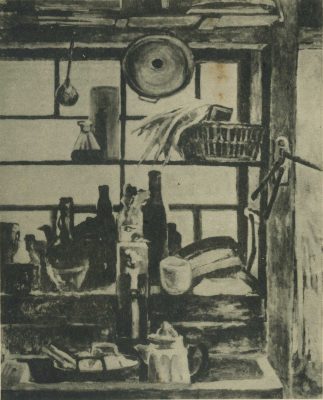 另一幅則是在1943年入選,當時正值戰爭激烈時期,廣瀨對日常生活的觀察更爲升級。他的作品〈ともし流(流理臺)〉將視角極度聚焦於室內,描繪平凡的流理臺角落。他提及選擇此畫題,是因為自家總是出現美麗的逆光線,因此便以光線的調合和色彩的對比為中心進行創作。此畫作成功地奪得當時的最高榮譽總督賞,為臺中州的藝術界大振士氣(註10)。