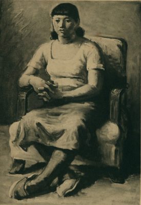 1929年旅法歸國的伊原宇三郎同樣發表了人像作品〈椅子によれる〉,不僅榮獲帝展特選,還同時拿到第三屆昭和洋畫獎勵賞,使他成為畫壇注目的焦點。另外在1928-29年創作的〈室內群像〉以及1931年的〈二人〉,都可以感受到他對於人體立體感的掌握,以及對於豐腴女性像拿手的描寫。他在創作〈二人〉的時候這麼說:「我一直想描繪呈現素樸之中富有厚實感的量體。」(註9)