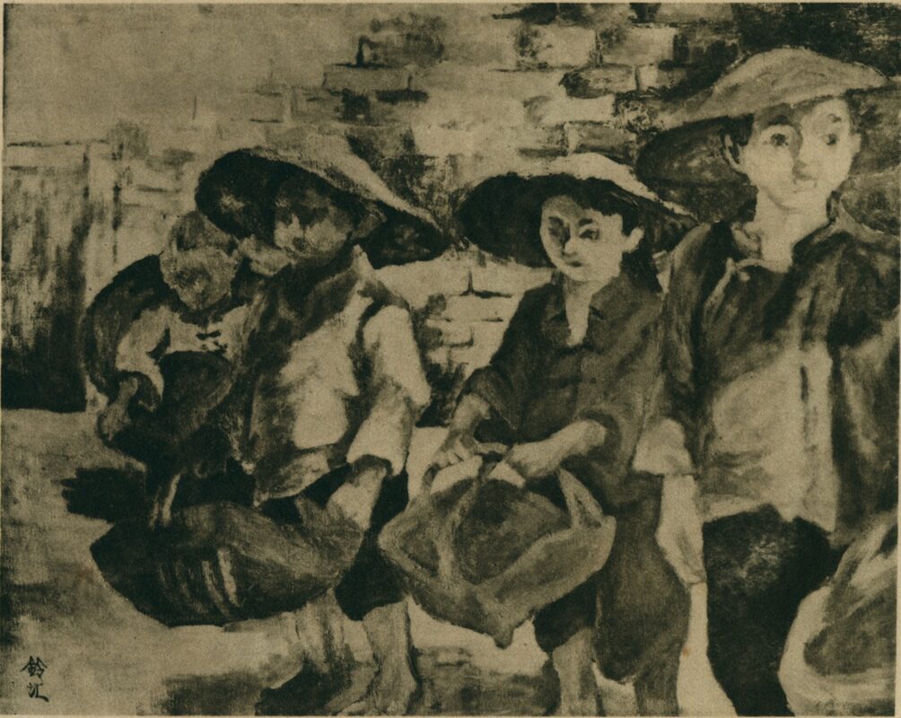 1941那年,20歲的鷲崎鈴江,甫加入飯田實雄門下的創元美術協會,以〈村童〉(圖1)一作初入選第四回臺灣總督府美術展覽會(後簡稱「府展」)。