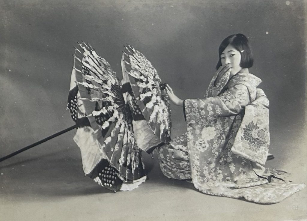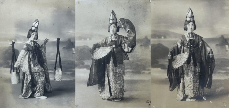 1930年,年僅十歲的殿村愛子第一次站上了舞臺。那是一場位於臺北ホテル的西菱會舞蹈發表會,初次演出的節目為〈潮汲〉。在寫真帖中留下多張此次演出的照片,身著和服的殿村愛子,拿著道具,在相機前擺出了各式的舞蹈姿勢。除此之外,亦有〈潮汲〉的舞臺照可以一覽當時表演情況。