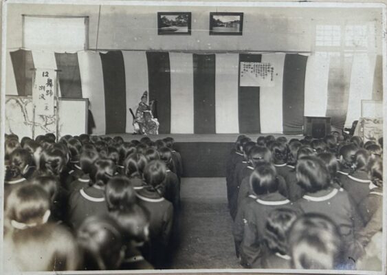 照片背後註記「昭和九年三月□ 台北第一高女予餞會□ 汐汲」,部分情況下日文漢字中「潮」、「汐」通用。