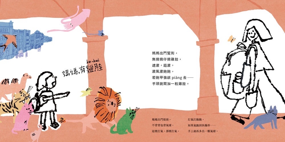 打開《大稻埕動物園》,跟著故事中的親子,在一首一首可愛有味的童詩,和林小杯童趣盎然的圖畫中,大稻埕的風景似曾相似,每一個景點都能真實映照著現實的街景,卻又能看見截然不同的視角,發現那些只有孩子帶路才能看見的驚喜。