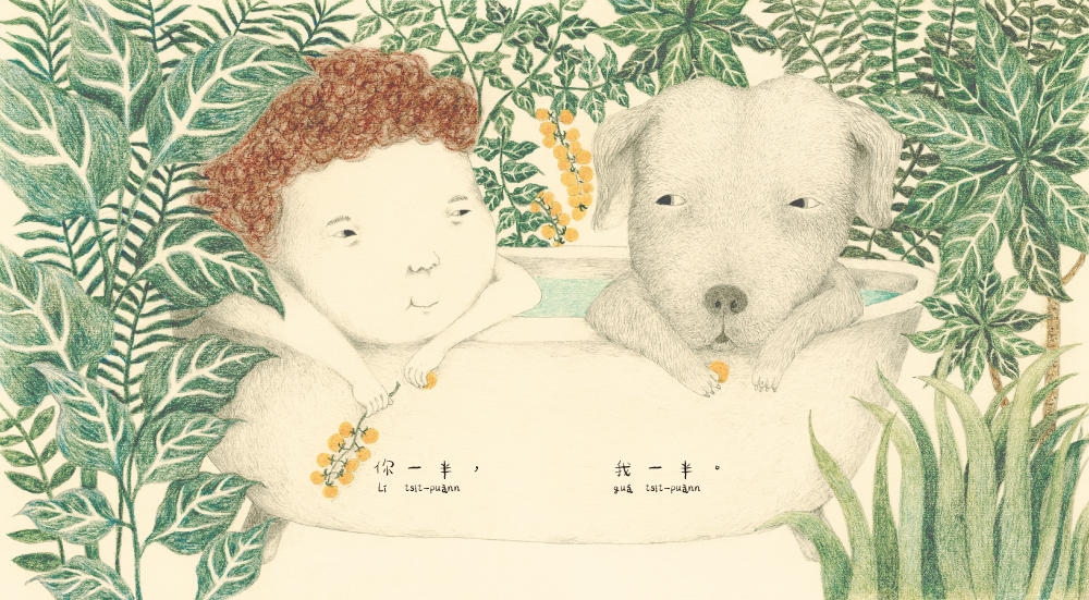 《你一半 我一半》是儲玉玲和儲嘉慧再度攜手合作的台文繪本。