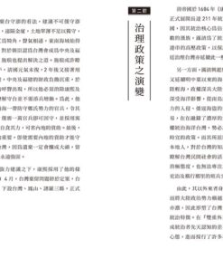 現任吳三連台灣史料基金會秘書長的戴寶村教授,與長榮大學台灣研究所兼任所長的溫振華教授聯手,梳理清帝國統治下的台灣。除了討論政治、經濟、文教等官方施政架構,更從姓氏、宗教,以及歌謠、俚語等社會風俗入手,帶領讀者看到生活中不同的文化痕跡,與台灣文化的多元與獨特。
