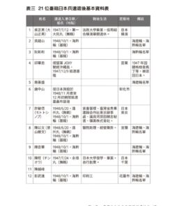 一、從蘇聯地區遣返的臺籍日本兵名單