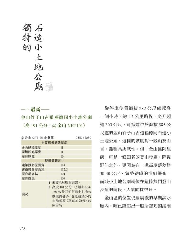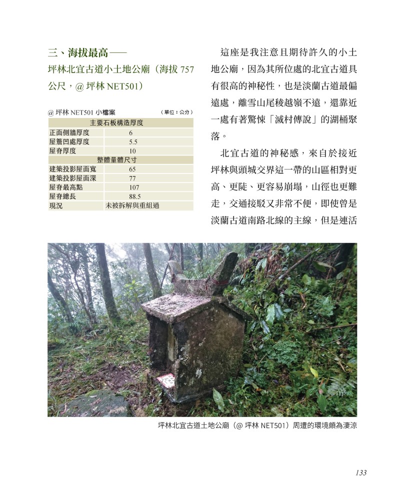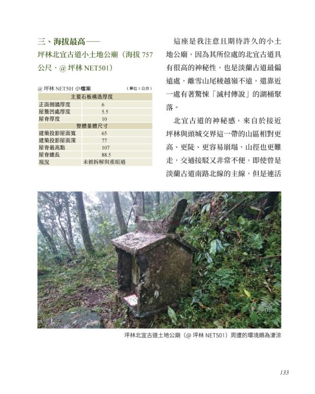 1. 淡蘭古道最完整的石造小土地公廟記錄。