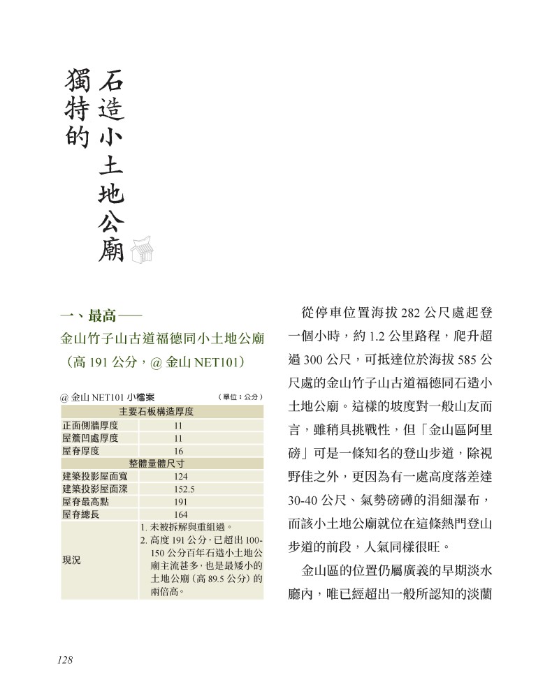 2. 從石造小土地公廟的形制演變、特色,到與地方的連結,最全面的石造小土地公廟之觀察與記錄。