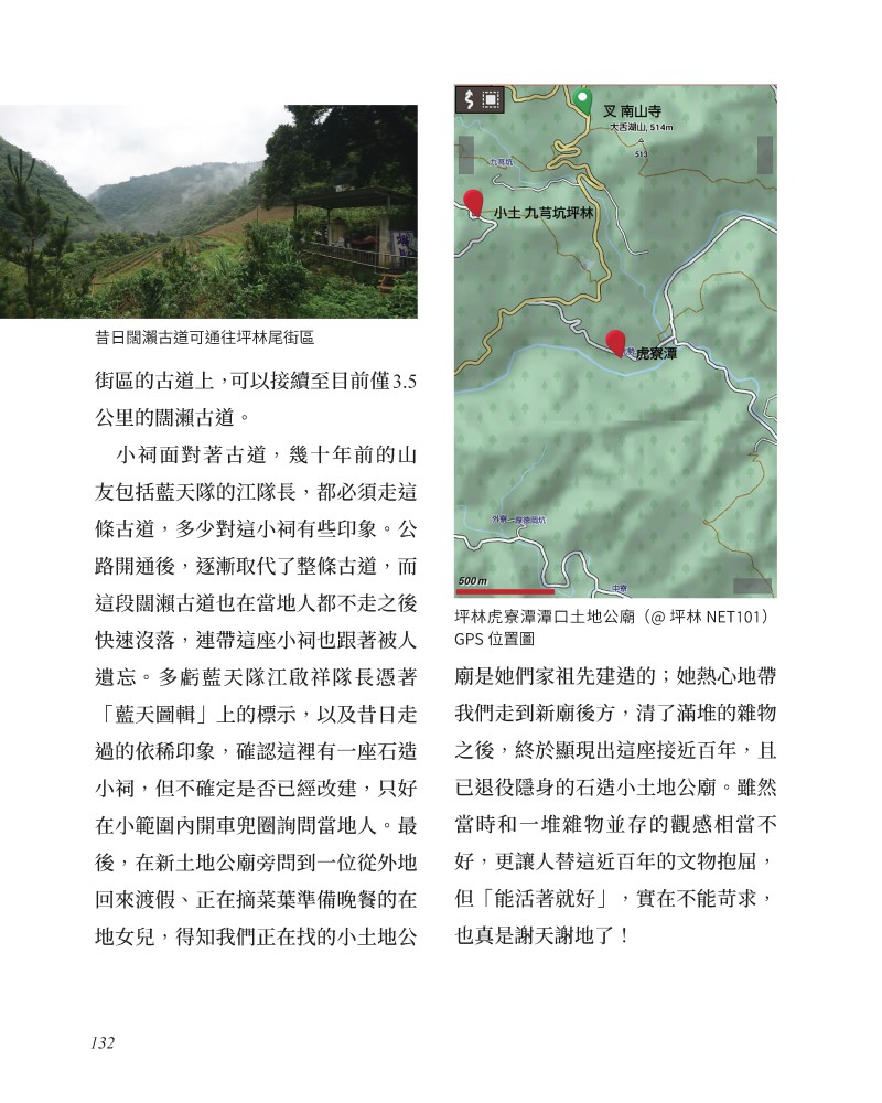 古道蘊藏著豐富的歷史人文與自然寶藏,而當中的石造小廟,大部分是土地公廟,更是歷經百年歲月,見證先民開墾的足跡與聚落興衰。
