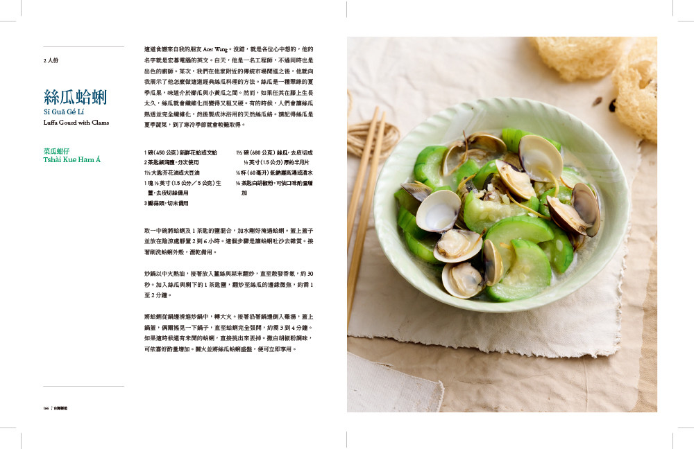 在這本探尋台菜系譜與精髓的書中,她彙整了逾一百二十道台菜食譜,除了闡述製作工序與技巧,也藉由研究與訪談呈現菜餚背後的歷史淵源、故事,以及在地人的情感連結,進而呈現島國多元融合下的飲食風貌,也從美食的角度深度探索族群的變遷、命運與認同。