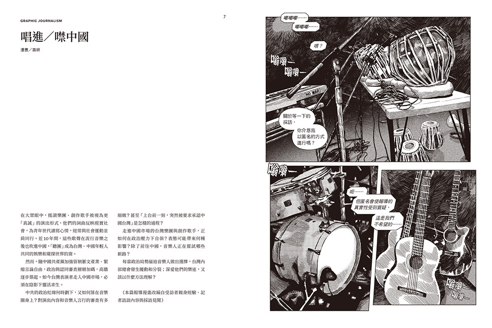 擅長以細緻筆觸描繪內心情感的漫畫家高妍,從自身對音樂的熱愛與了解出發,結合專訪報導與探詢記者心境,以無聲漫畫做為載體,對撞上政治高牆的音樂產業現況拋出響亮問句。