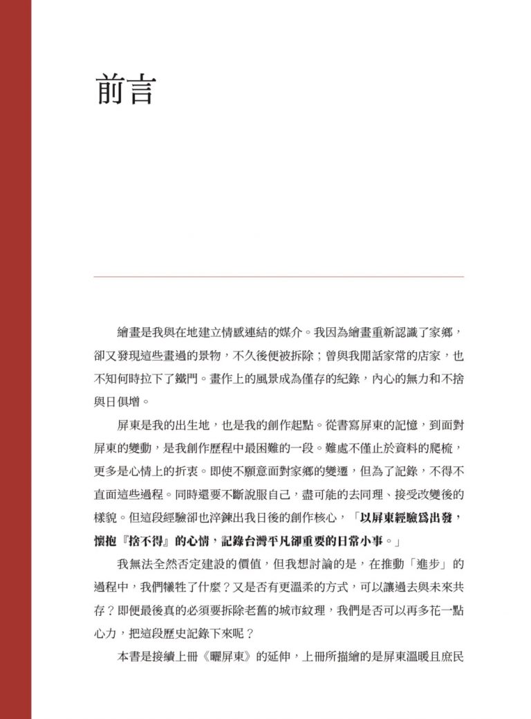 相關著作:《曬‧屏東:城市觀察畫家的我城記憶【首刷限量附贈「漫遊繪屏東」地圖】》《曬‧屏東:城市觀察畫家的我城記憶(作者親簽版)【首刷限量附贈「漫遊繪屏東」地圖】》