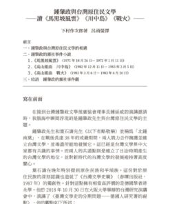 ˙ 鍾肇政與台灣原住民文學――讀《馬黒坡風雲》《川中島》《戰火》/下村作次郎