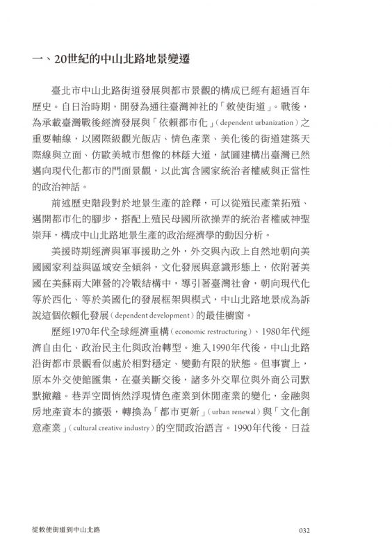 學者殷寶寧教授三十年磨一劍。從敕使街道至中山北路的時代更迭裡,觀察、實地記錄與析論,那不斷被塑造、轉型,宛若「一人千面」名角般的「中山北路」之風華物語。