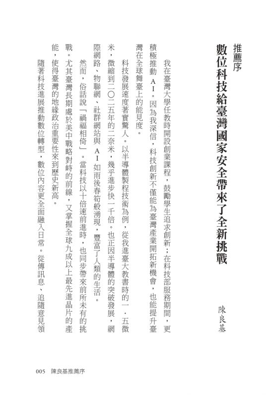推薦序:數位科技給臺灣國家安全帶來了新挑戰/陳良基