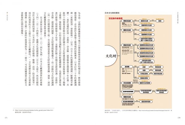 透過十個文資現場的實地履勘,包括古蹟、歷史建築、考古遺址、聚落建築群及文化景觀等,帶出臺灣文化資產的真實脈絡與現況,反映文資保存在觀念與執行上的發展課題。此外,借鏡日本文化財的保存政策,觀察日本如何在「文化景觀」架構下維護歷史風貌並推動地區活力,以及在文資修復、人才培育的卓然成果。並針對臺灣目前在實務推動上面臨的挑戰,提出論述與分析,全面檢視了臺灣文資保存的進展與困境,期以前瞻性的政策思維面對這個重要議題,政府與民間共同努力,一起守護臺灣的文化資產,永續傳承人類珍貴的歷史紀錄。