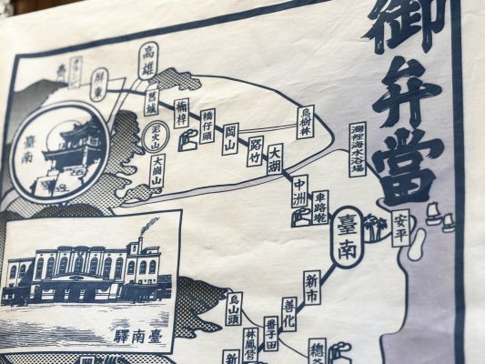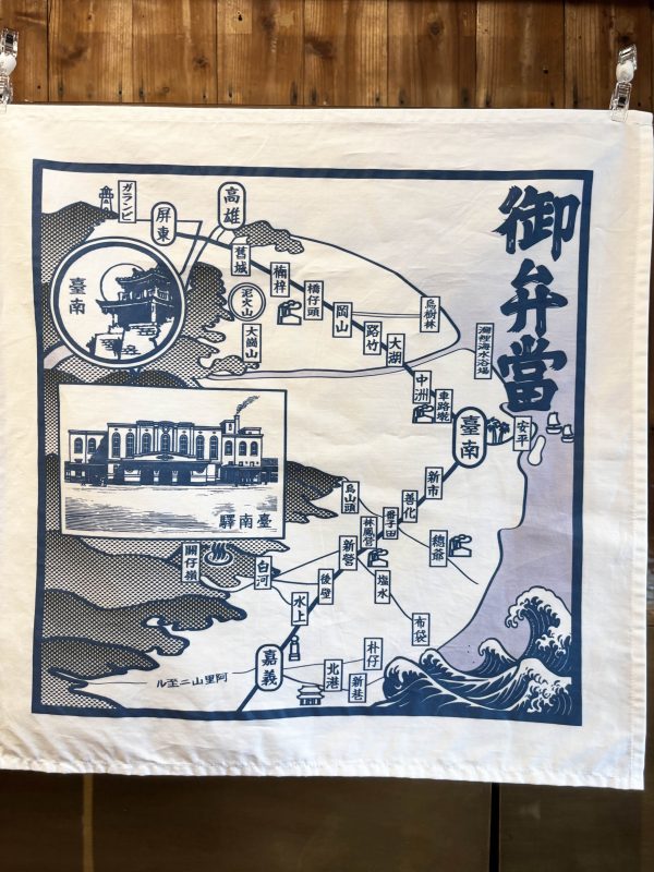 絵柄は日本時代台湾鉄道の駅弁の掛け紙をイメージしたデザインです。当時各売店の駅弁はそれぞれ特色を生かしたおかずだけでなく、観光宣伝の一翼を担う多彩な掛け紙も時代を反映した風情のある記憶となっています。