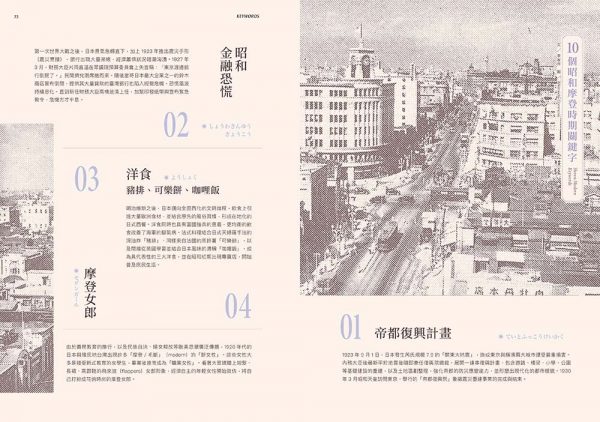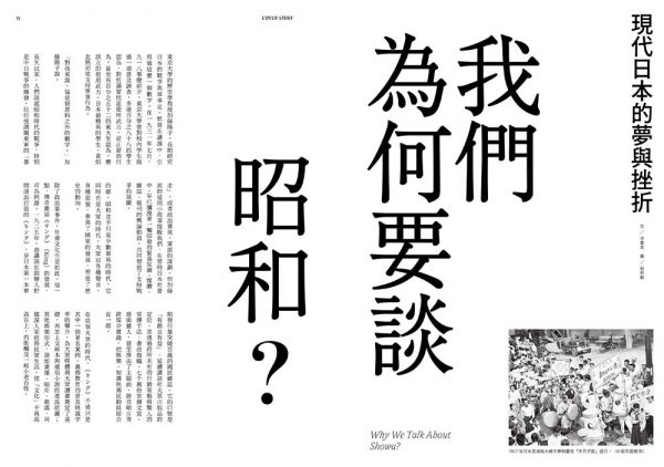 以大事紀、深度專文、人物側寫、關鍵字等單元深入解讀昭和時代,邀請野島剛、龍貓大王通信、重點就在括號裡、劉芷妤、謝宜安、張嘉真、洪芳怡等作者深度剖析昭和議題。