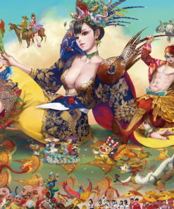 蚩尤畫筆下新潮又具古典美的媽祖形象描繪,對台灣迎媽祖廟會活動的實地觀察,以及媽祖信仰的重要元素,都巧妙的呈現在畫面之中。除此之外,新潮的千里眼與順風耳將軍、土地公,以及四海龍王、註生娘娘、中壇元帥、八仙等民間熟悉的神明,也都一一躍然於紙上。最為難能可貴的是,除了傳統的吉祥紋樣之外,台灣本土許多特有的動、植物也都成為媽祖服飾中的視覺焦點,令人嘆為觀止!
