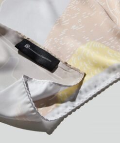 這款絲巾即以書中其中一幅手繪稿為發想原型,運用溫潤色調與幾何色塊,轉化140年前福爾摩沙北部一帶的法人行旅軌跡。