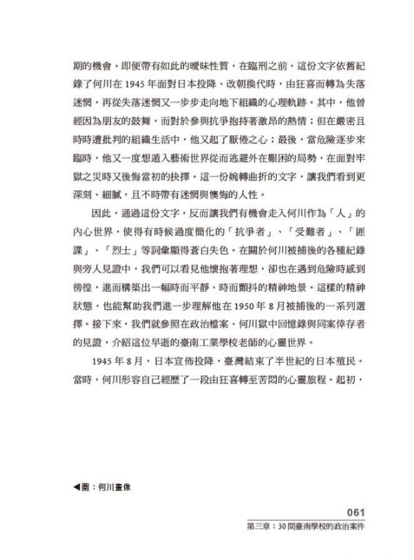 本書深入研究臺南校園政治案件,細數30所學校的受難者故事,並剖析四大案件類型。不僅揭露白色恐怖的真相,也挑戰我們如何記憶歷史、守護自由。