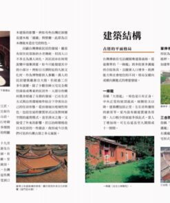 全書收有台灣本島離島共計68棟建築。以空拍機記錄,完整展現古厝的建築結構、周遭環境,用不同以往的視角,反映建築的風水考量與居住需求。並輔以拉線透視圖,解說建築部位與格局。