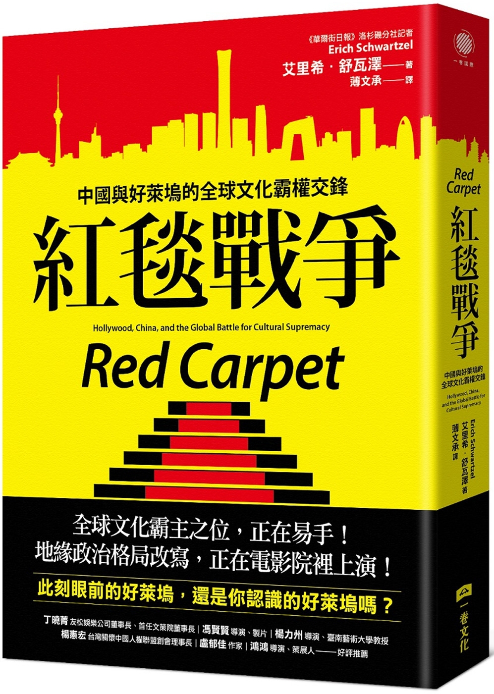 「在民主制度與威權主義之間持續不斷的意識形態鬥爭中,流行的大眾娛樂意外成為一個關鍵的戰場。《紅毯戰爭》一書規模宏大且研究縝密,彷彿是來自這場戰爭前線的戰地報導,而這場戰爭的結果將決定我們的未來。這本書自始至終都相當引人入勝,有時甚至令人不寒而慄。艾里希.舒瓦澤的寶貴作品,展現了敘事的力量是如何不斷改變世界。」——黃哲倫(David Henry Hwang),劇作《蝴蝶君》獲東尼獎、《軟實力》入圍普立茲獎決選名單