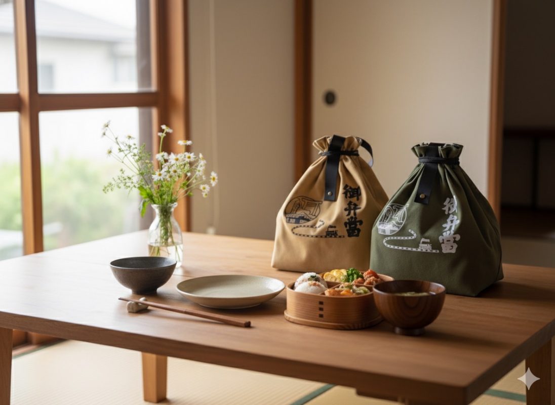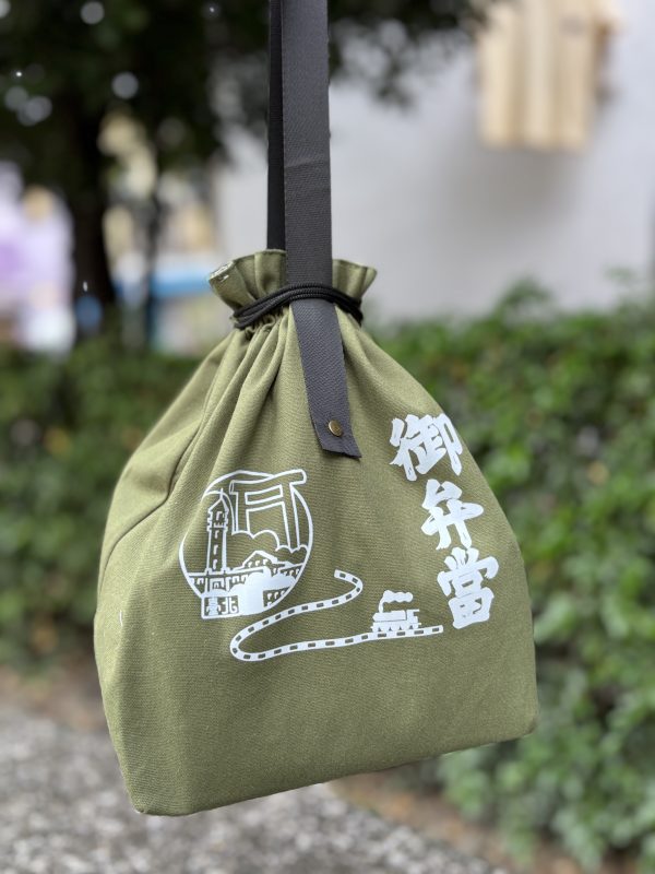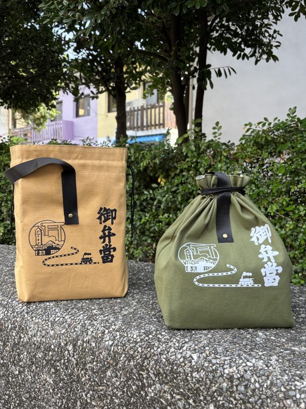この巾着バッグは、駅の記念スタンプと鉄道弁当のイメージを融合させ、車窓から月台の売り子に弁当を買ったあの懐かしい光景を、現代の素材でよみがえらせました。