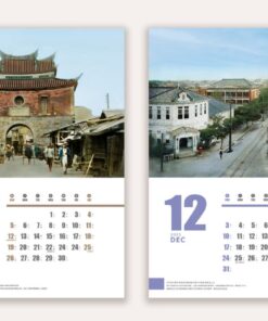 臺灣古寫真上色月曆正式登場!!內頁精選12張消失的經典建築清晰大圖寫真(42x59cm,150g銅版紙,共13頁),經研究考證後以手繪數位上色,包含從荷蘭時代、清國時期到日本時代臺灣各地記憶中具代表性的經典建築,月曆內也附註臺灣觀點的歷史重要節日。