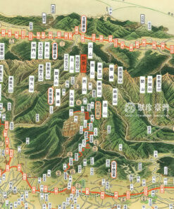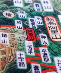 This artwork is one of the versions of A Bird’s-Eye-View of All Taiwan, painted by the bird’s-eye-view illustrator Tsunemitsu Kaneko. The original piece is a scroll painting.