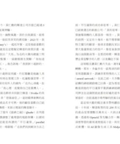 《黃仁勳傳》細數輝達如何從一間生產電路板配件的公司,成為價值數億美元超級電腦的供應商,站上科技霸主地位。本書描述固執的企業家不顧華爾街的質疑,堅持提升運算能力,終於登上全球富豪榜的故事。這也是電腦架構改革的故事,描述一小撮叛逆的工程師如何發動這場變革。更重要的是,這也是關於AI未來的故事,也就是黃仁勳所說的「下一次工業革命」──創新晶片技術將帶來超擬真的虛擬化身、自主移動機器人、自駕車,以及隨需生成的新型電影、藝術與書籍。