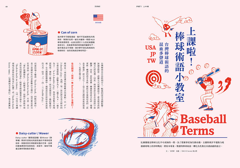 收錄棒球術語、應援文化、戰歌、漫畫、球場美食與時尚風格,從觀眾席到球場中央,從比賽到生活,完整呈現棒球如何成為台灣人的日常娛樂與文化記憶。就算不是死忠球迷,也能輕鬆讀懂、快速入坑。