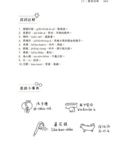 4. 讀讀第三寶:逐篇附「臺語小事典」延伸補充佮文章有關的語詞,線條簡單的插畫,提升閱讀趣味性,增加師生自我對話。