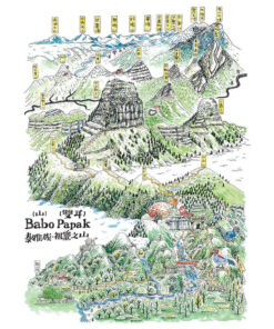 ◎充滿探索趣味的山岳地圖:融合地理、生態、歷史、人文元素,適合慢慢欣賞,也可以當跨領域教材,包括雪山、大霸尖山、南湖大山、嘉明湖、能高越嶺西段、棲蘭、太平山、阿里山、布農祖居之地等。