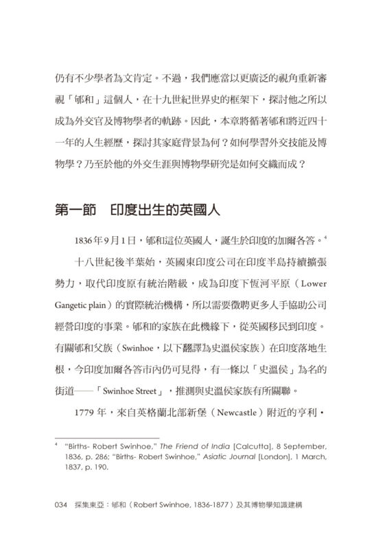 採集東亞:郇和(Robert Swinhoe, 1836-1877)及其博物學知識建構