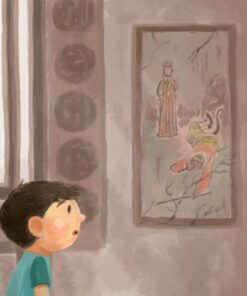 某日,小男孩追著小黑狗,走進了老房子,發現門板上門神的腳傷、牆壁上孫悟空頭上的裂痕、屋梁上嫦娥裙襬的破洞。