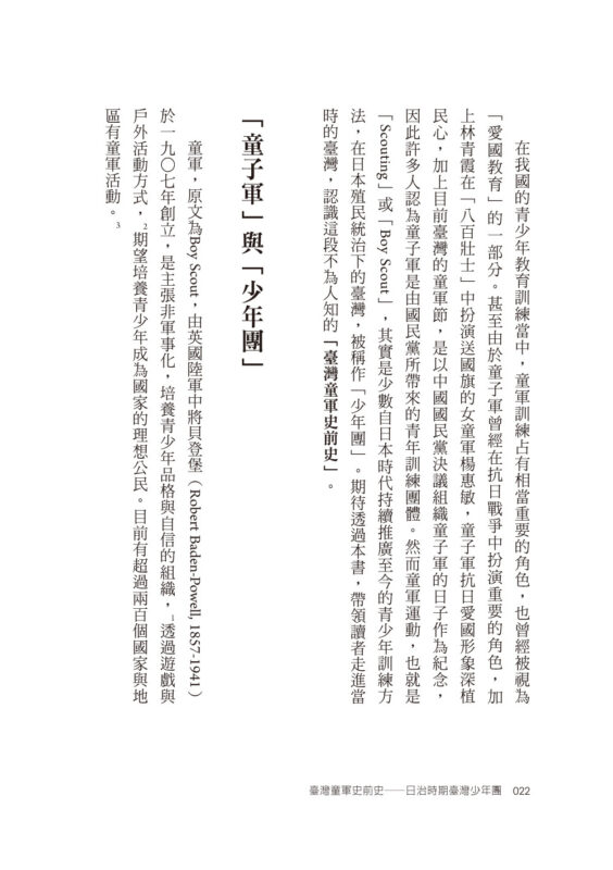 ★透過豐富的史料分析,梳理臺灣的少年團的起源、歷史脈絡、活動特點,勾勒出處於日本殖民統治下的臺灣少年團發展流變!
